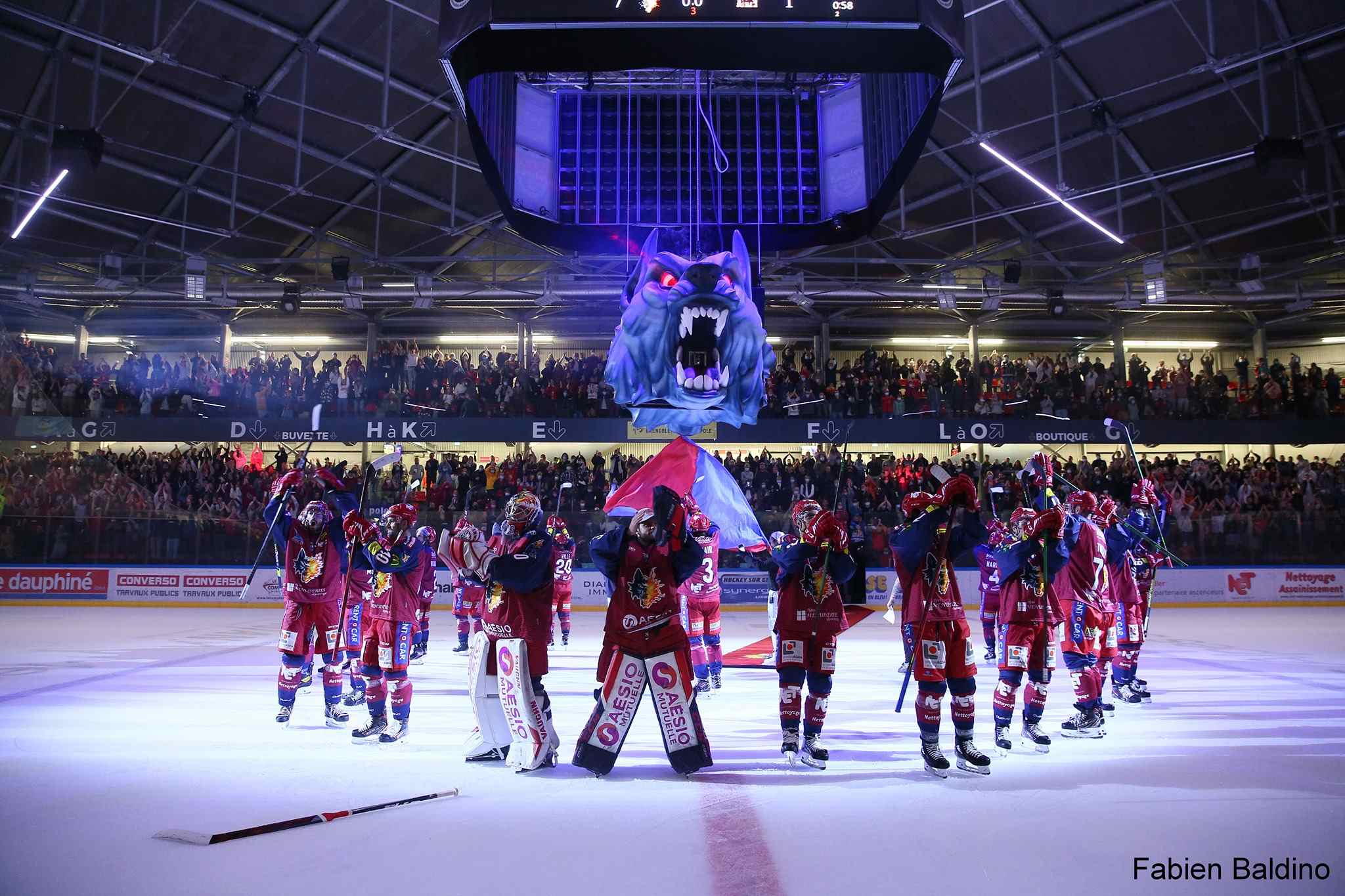 At Art Nzo, we recently had the pleasure of working on an exciting project for the Brûleurs de Loups de Grenoble, a renowned ice hockey team celebrated for its passionate fanbase. In collaboration with FX³, we created two large wolf head sculptures that have become a dramatic addition to the arena, thrilling fans with their intense presence.