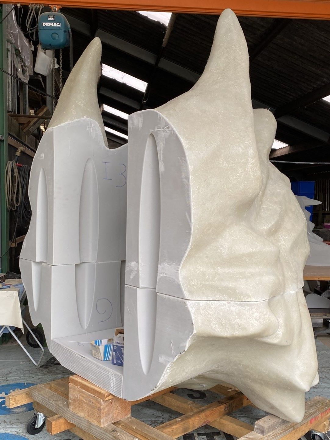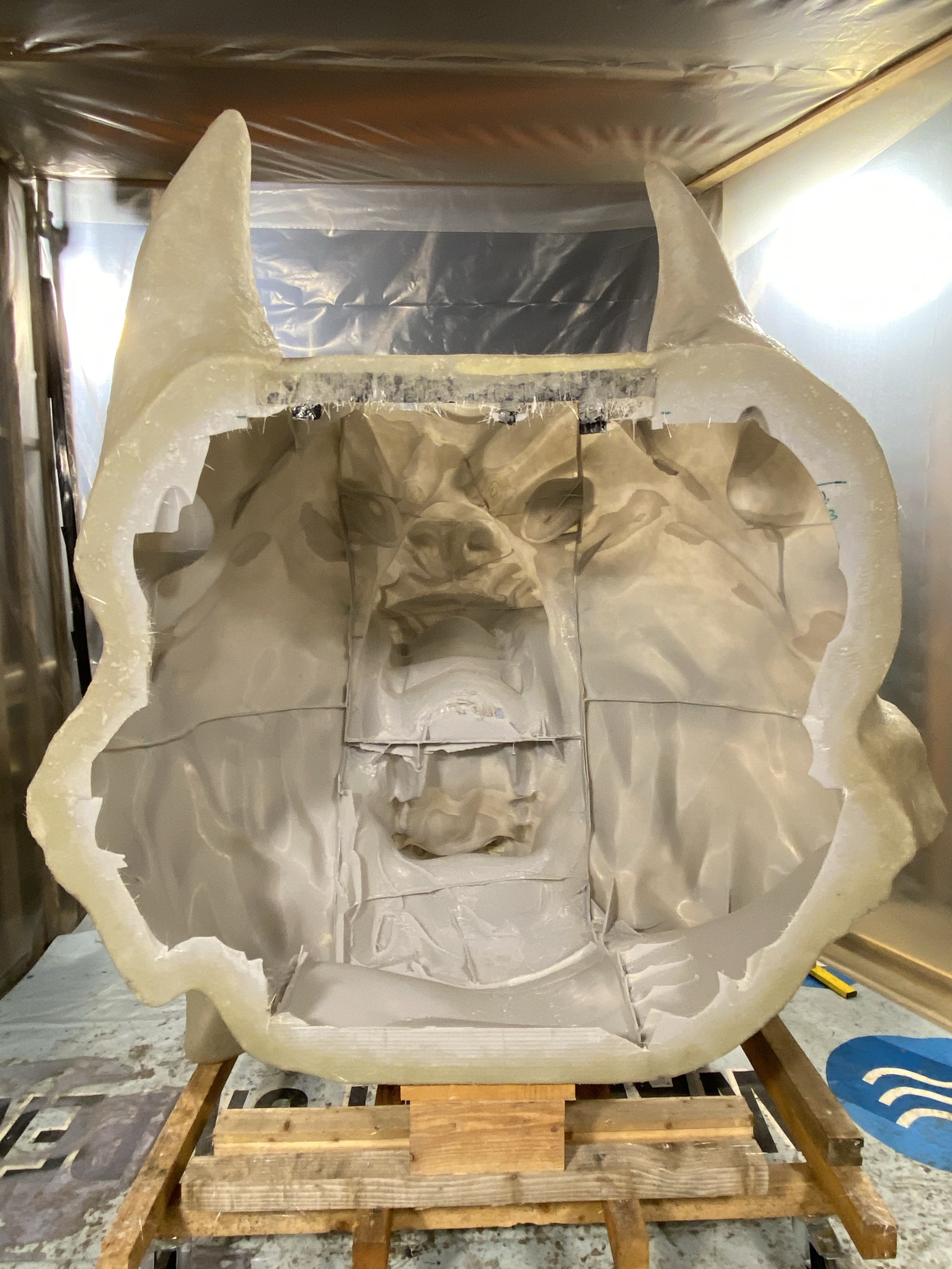 The final step in our workshop was applying a primer layer to prepare the wolf heads for their vibrant paint job. Once FX³ took over, they added the finishing touches, including the spectacular paint and special effects. Mounted above the rink, the wolves were brought to life, spitting fire and emitting smoke, leaving the crowd in awe.